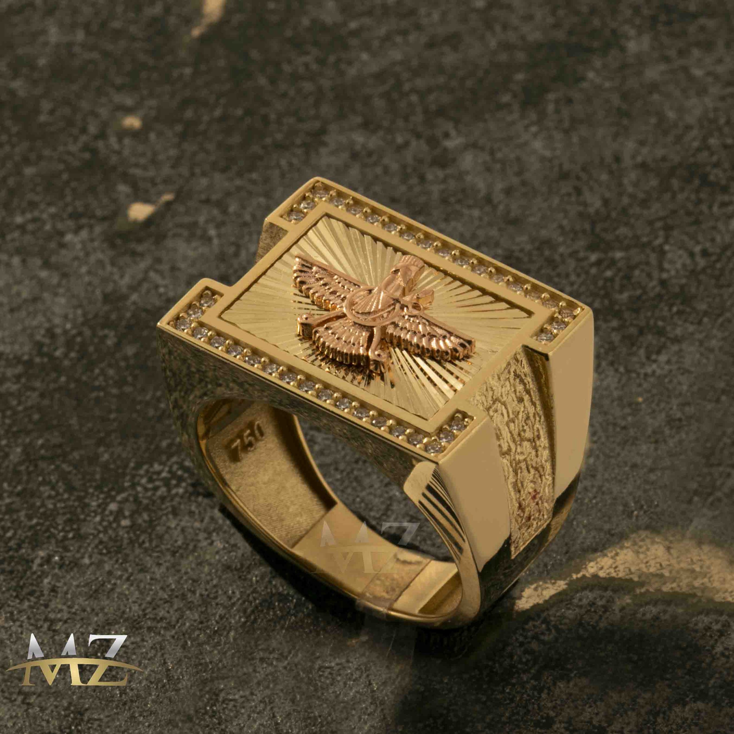 انگشتربا طرح برجسته فروهر و زمینه تراش لیزری