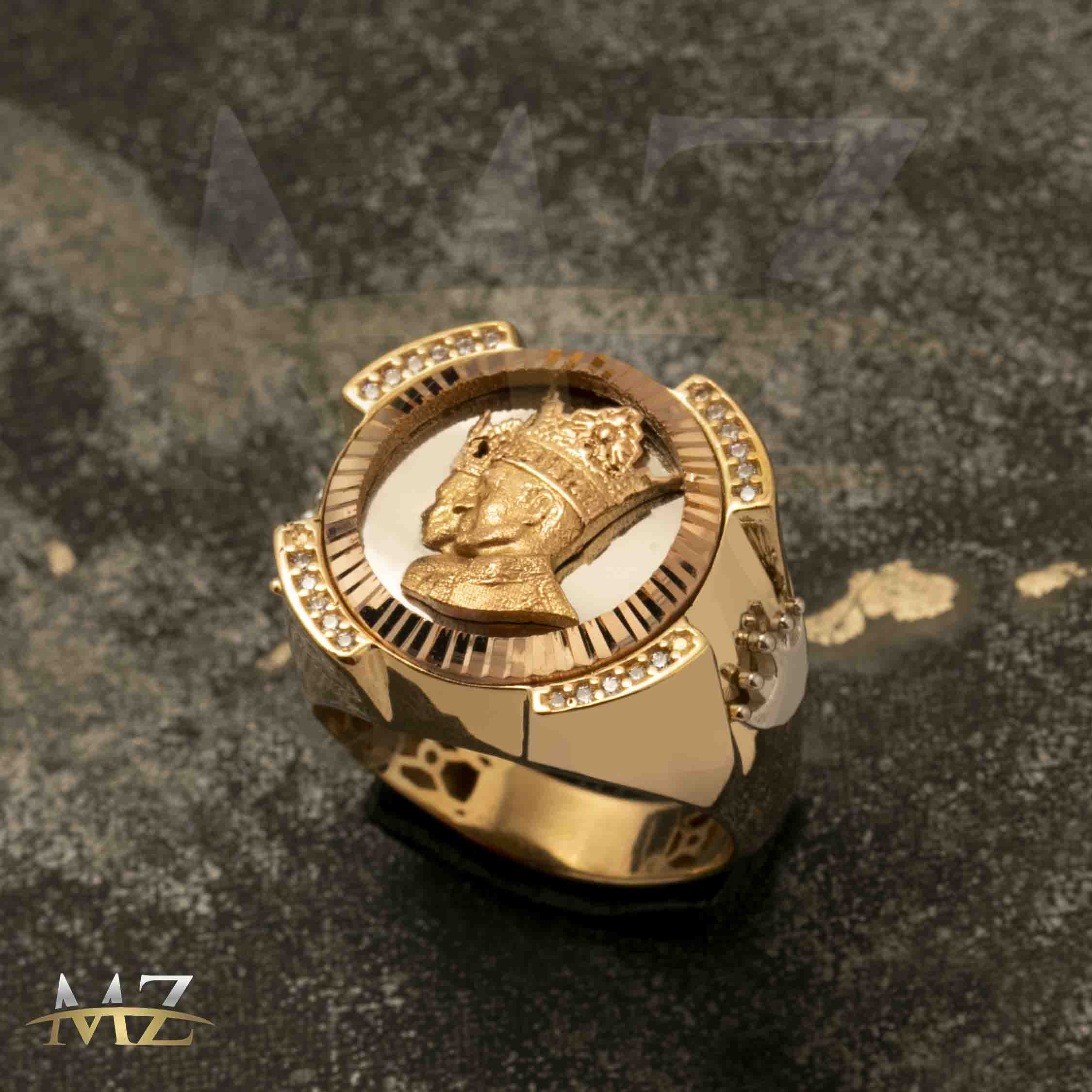 طرح روی انگشتر فوق دو نیم رخ با پرسپکتیو میباشد